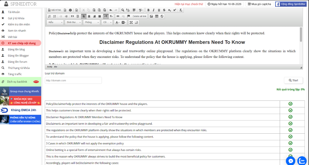 Policy OKRUMMY Disclaimer demonstrates clarity in service provision. Each content is specified in detail to ensure that users do not misunderstand the house’s commitment. This is also an important basis to help maintain the platform’s reputation during the process of handling arising incidents.